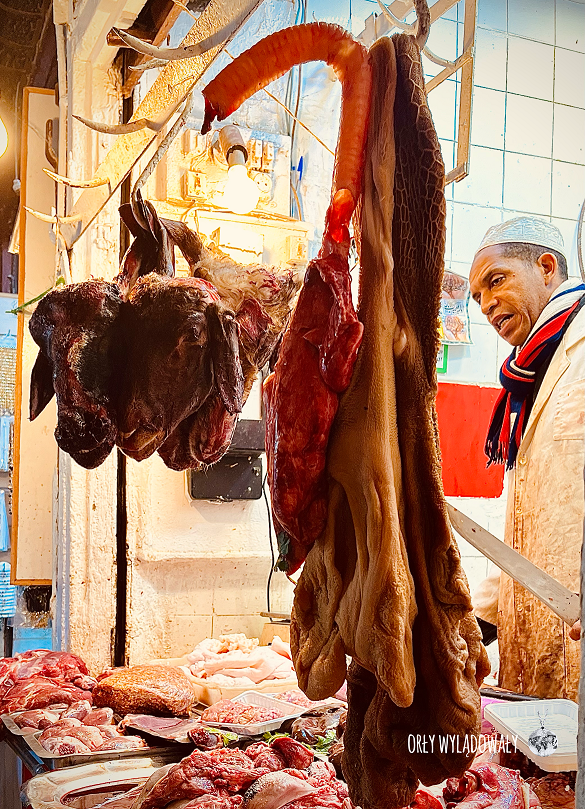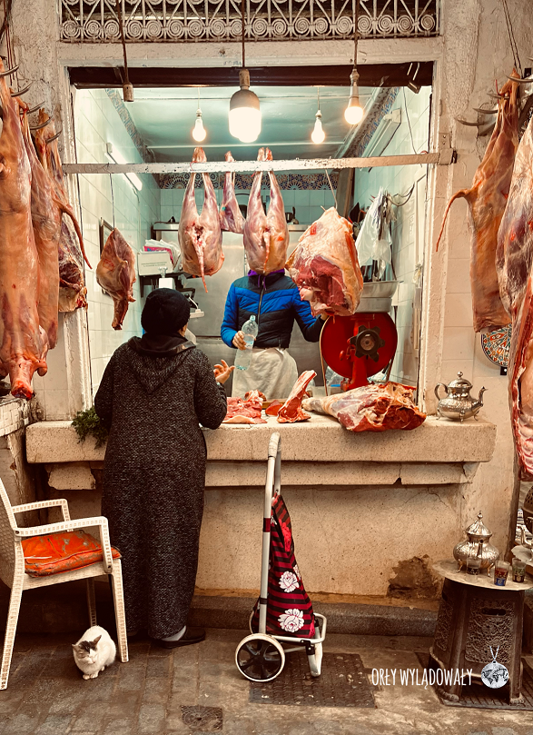 W miarę przemieszczania się do granic mediny, przekraczając Błękitną Bramę, wchodzimy w coraz mniej turystyczne tereny przenosząc się w świat handlu owocami, warzywami, przyprawami czy mięsem. Jako miłośnicy lokalnych targów, odwiedzający takie miejsca w każdej podróży, zanurzyliśmy się w tej cudownej mieszaninie dyskusji, barw i zapachów.