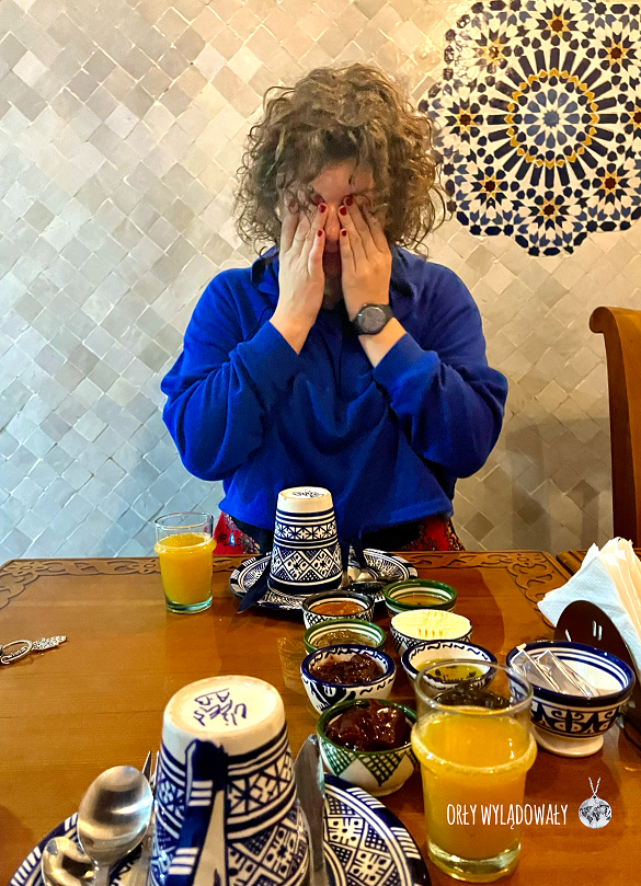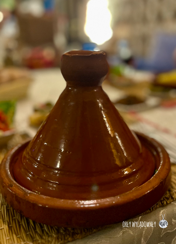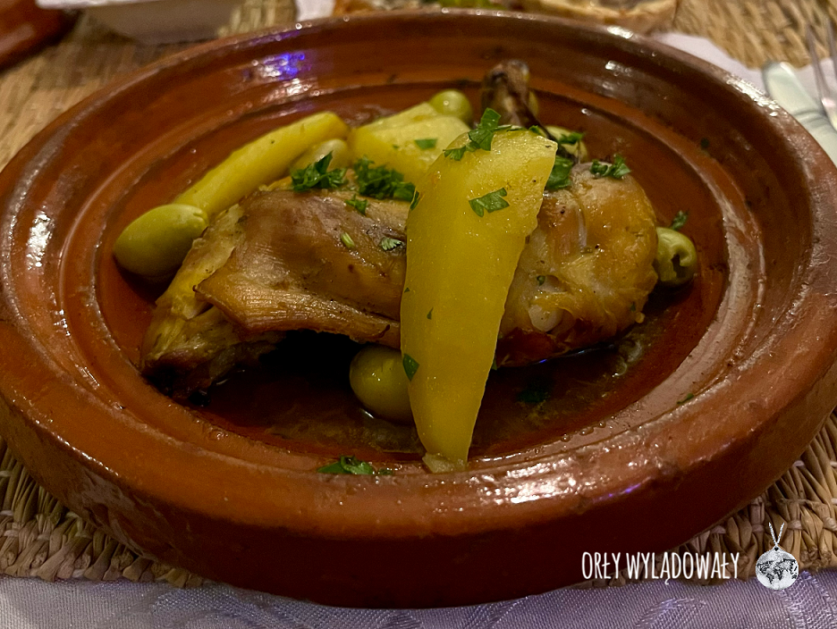 To właśnie tutaj spróbowaliśmy naszego pierwszego tajine, czyli dania, które wywodzi się stąd, z krajów Maghrebu. Przygotowuje się je w specjalnym glinianym naczyniu o tej samej nazwie. Jego skład bywa różny, ale najczęściej zawiera on w sobie mięso, kaszę, warzywa i przyprawy takie jak kolendra, czosnek, kumin czy papryka. Kształt naczynia ma tutaj ogromne znaczenie. Stożkowa część pozwala na gromadzenie się i ponowne skraplanie pary wodnej. Całość dusi się więc we własnym, wyśmienitym sosie.