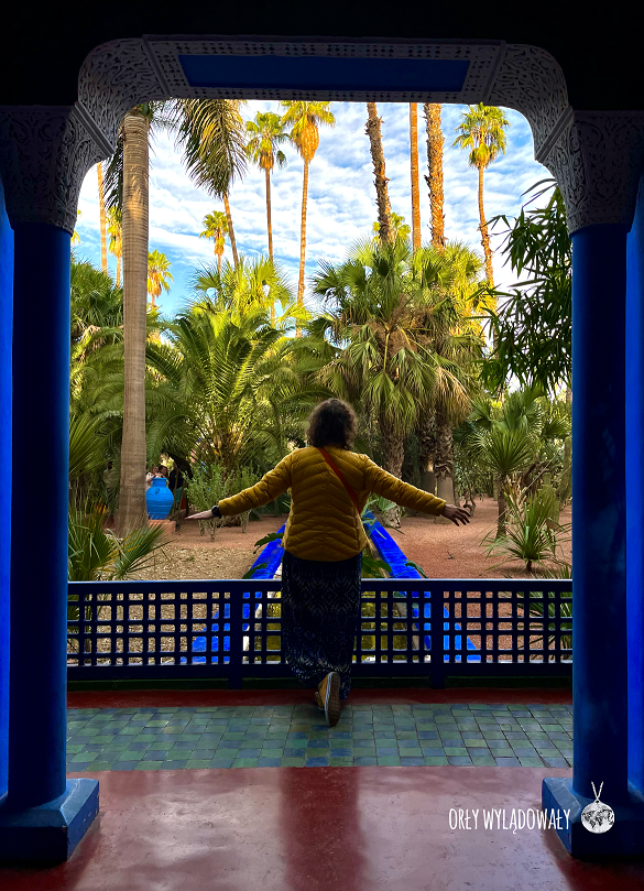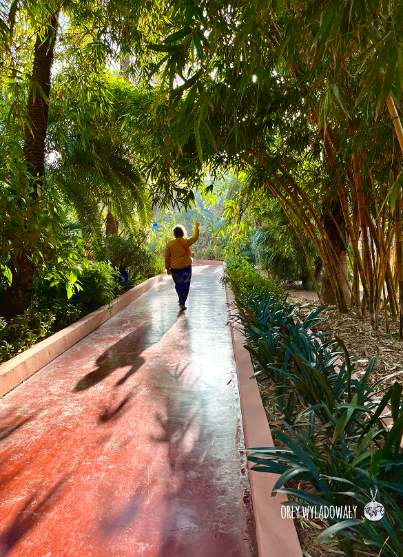 Dla nas kontrast był tym większy, że jak dotąd byliśmy tylko w medinie. Mieszanka zapachów kurzu, paliwa z motocykli, czy odchodów osiołków zamieniła się na zapachy natury, a w toaletach… perfum YSL. Turystów było sporo, ale nie czuliśmy się aż tak przytłoczeni tłumem jak np. w Parku Güell w Barcelonie. Po kompleksie spaceruje sporo jego pracowników, którzy chętnie udzielają odpowiedzi na różne pytania. Z jednym z nich porozmawialiśmy nawet o niedawno zakończonych i bardzo udanych dla Maroka Mistrzostwach Świata. (Standardowo… Skąd jesteście? Z Polski? – Lewadnowski!).