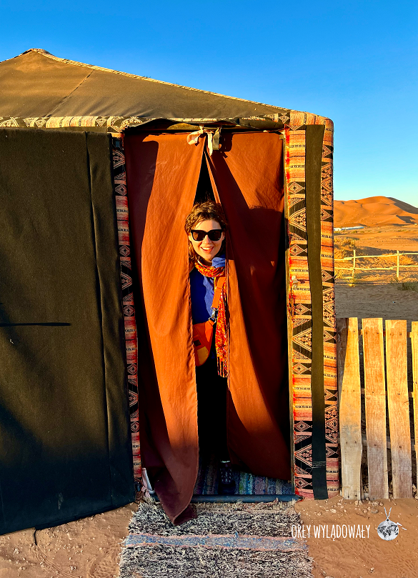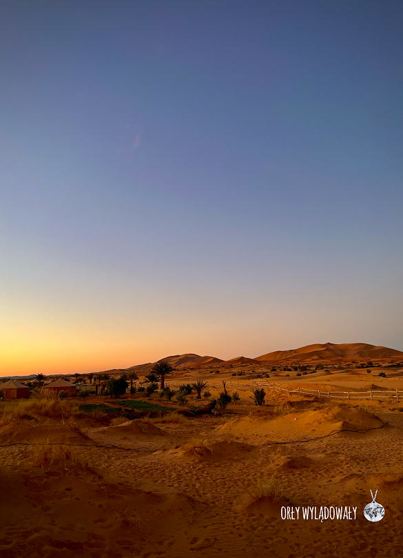 Po chwili przyjechał po nas Marokańczyk, z którym nie mogliśmy dogadać się w zasadzie w żadnym języku (nawet w „migowym” szło nam jak po grudzie). Wiózł on nas w kompletnej ciemności przez piaski pustyni ponad godzinę, zatrzymując się co jakiś czas przy samotnych budynkach i rozmawiając z miejscowymi. My bez zasięgu sieci komórkowej i w totalnej niewiedzy gdzie położone jest nasze obozowisko, zaczęliśmy się zastanawiać nad bezpieczeństwem. W głowach zaczęły rysować się nam najczarniejsze scenariusze rodem z życia uwięzionej przez piętnaście lat na pustyni Maliki Ufkir. Całość dodatkowo podsycała skrywana głęboko na co dzień ksenofobia.