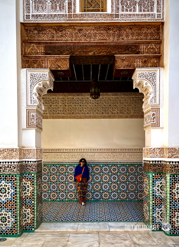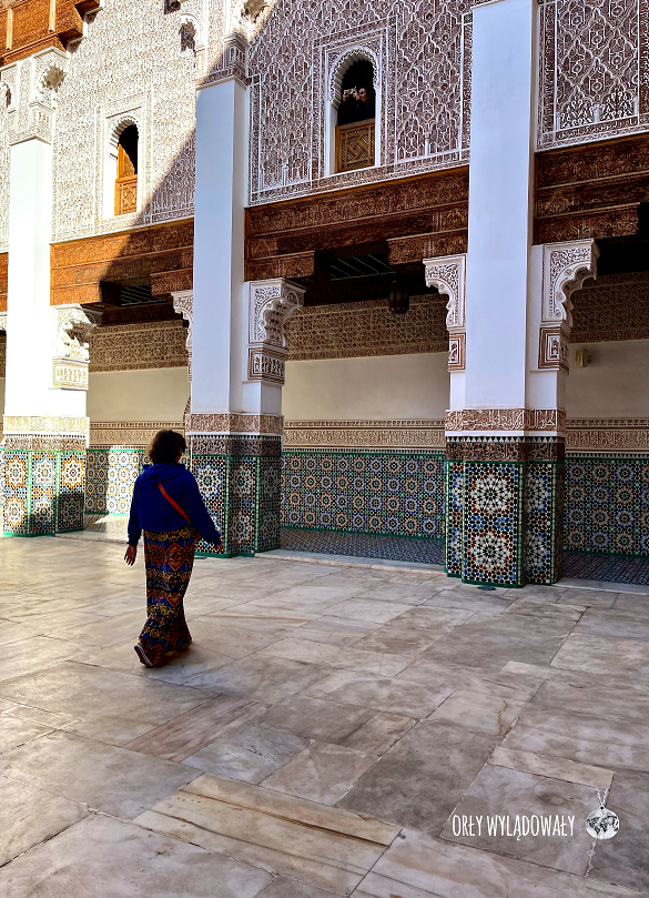 Wśród ciasnych uliczek znajdziecie także medresę Alego ibn Jusufa, do której warto zajrzeć choćby po to aby nacieszyć oczy pięknie zdobionym dziedzińcem.