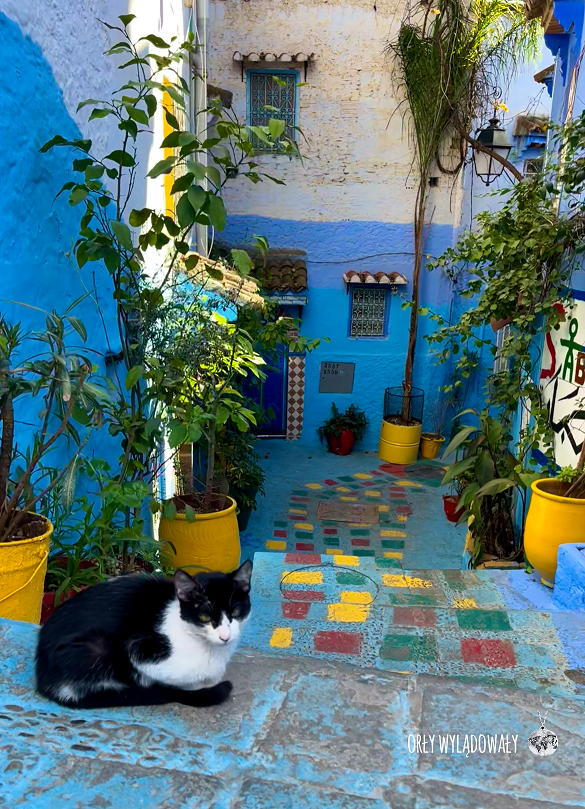 Stare miasto jest tutaj już zdecydowanie bardziej spokojne, aczkolwiek turystów nie brakowało. Przechadzając się po medinie trafimy na wiele zaaranżowanych uliczek okupowanych przez fotografujące się w nich osoby. Przy każdej wisi informacja o konieczności uiszczenia opłaty wysokości kilku MAD za zdjęcie. Nie skusiliśmy się na taką atrakcję, za to przespacerowaliśmy wszelkie możliwe i nie mniej urokliwe zakamarki. Sporą atrakcją okazały się także malownicze drzwi budynków, aczkolwiek niedoścignionym ideałem pod tym względem nadal pozostaje dla nas estońskie drzwi z Tallina.